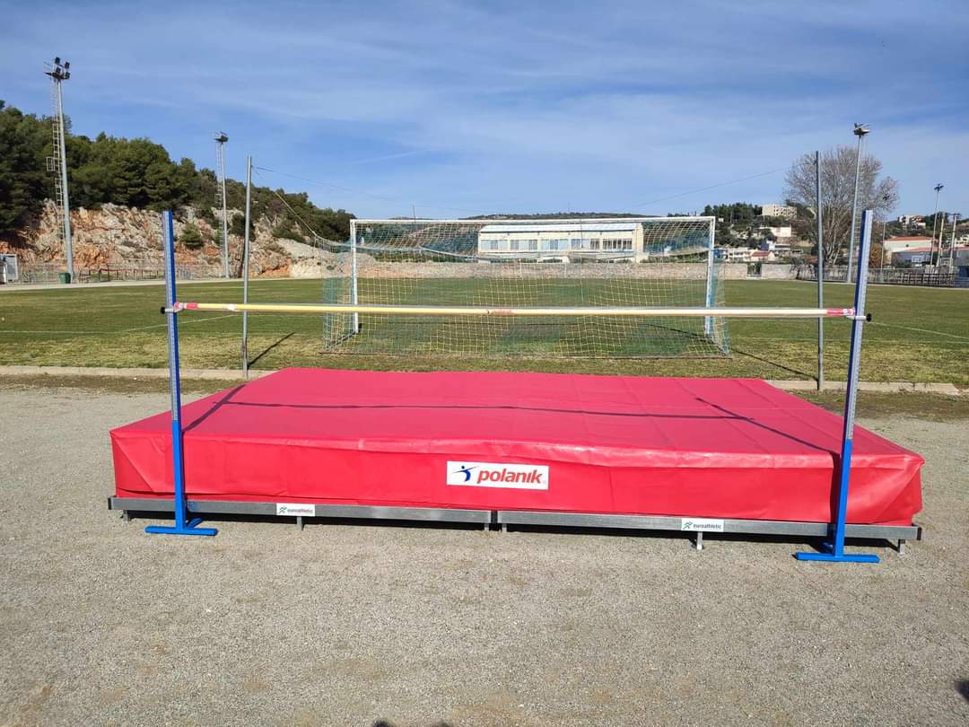 ➡ Πιο συγκεκριμένα έγινε προμήθεια ενός στρώματος για άλμα εις ύψος, μιας μεταλλικής βάσης για το στρώμα, κάλυμμα καιρικών συνθηκών, ενός στυλοβάτη για άλμα εις ύψος.
